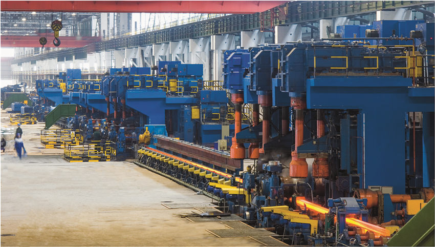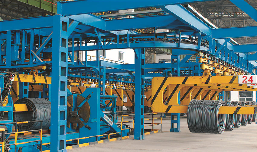 特殊鋼棒(卷)生產線是一條全連續式棒材和大盤卷復合熱軋生產線,加熱爐,連軋機,KOCKS減定尺徑軋機,飛剪,卷取樣,打包機等關鍵設備主要設備從法國斯坦因公司、意大利達涅利公司、德國kocks公司以及SIMENS及瑞典桑得斯公司引進。該生產線減定徑機組德國KOCKS軋機是世界上生產圓鋼尺寸精度極高的軋機,軋出的成品圓鋼精度等級能達到甚至高于1/4~1/5DlN1013標準,并且可以實現自由尺寸軋制,可實現熱機軋制工藝技術,全線的數字化控制和在線測徑技術、全線的控軋控冷技術、在線探傷技術。產品規格:?16mm~?90mm直條棒材和?14mm~?50mm大盤卷。直棒產品主要以軸承鋼、彈簧鋼、合結鋼、非調質鋼、碳素結構鋼、易切削鋼等產品為主。大盤卷產品主要以冷鐓鋼、優質碳素結構鋼、合金結構鋼、軸承鋼、易切削鋼、彈簧鋼等為主,是一條具有國內一流、國際領先水平的棒材、大盤卷復合生產線,產品具有內部組織均勻、表面質量好、尺寸精度高、產品品類全等特點。
